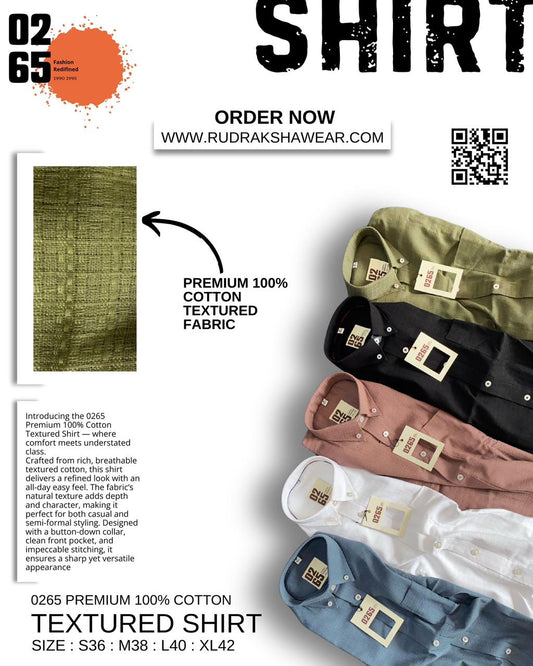 0265 100% Cotton Textured Fabric Full Sleeve Shirt | Button Down Collar