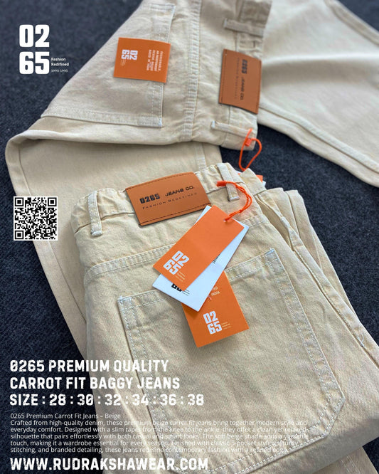 0265 Carrot Fit Baggy Jeans | Beige | Non Stretchable | Length 39”/40”