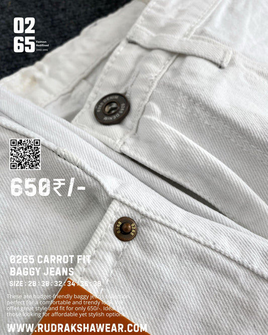 WHITE CARROT FIT BAGGY JEANS- Length 40" - NON STRETCHABLE