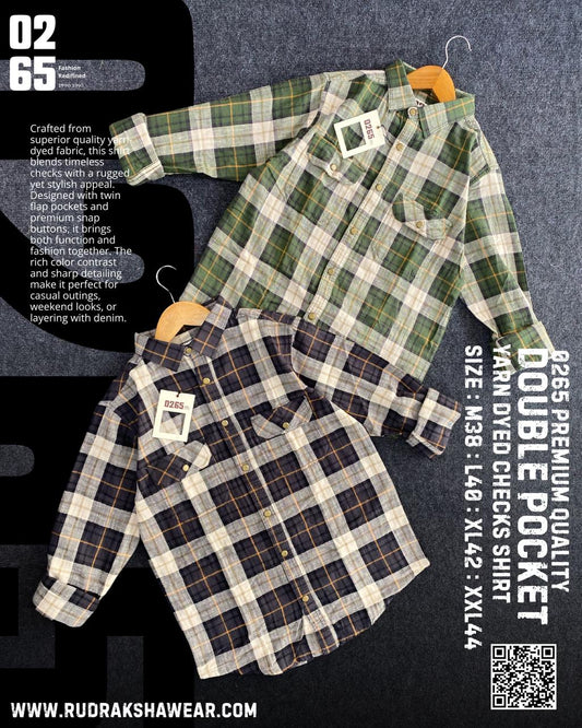 0265 Premium Double Pocket Shirt | 100% Cotton | Yarn Dyed Fabric | Backside Pleated | Ultra Soft Feel