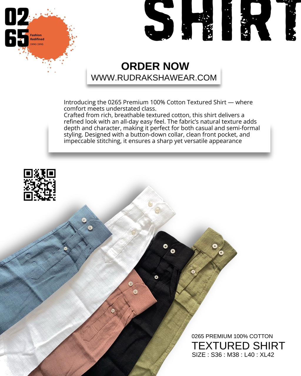 0265 100% Cotton Textured Fabric Full Sleeve Shirt | Button Down Collar