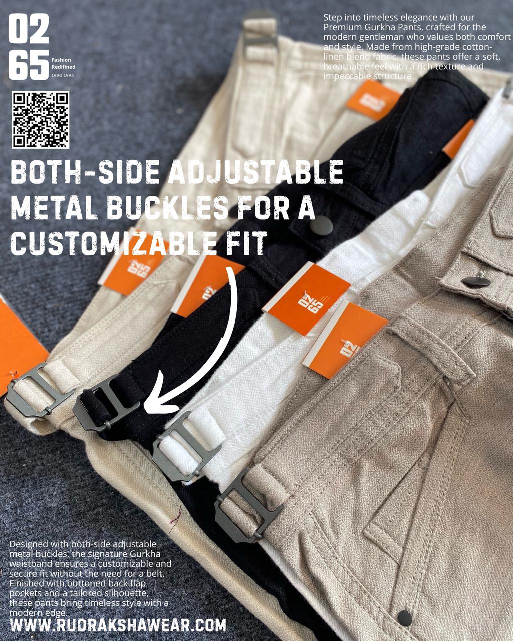 ๐ Classic Gurkha Style: Signature double-buckle waistband with front pleats gives a structured yet stylish look.