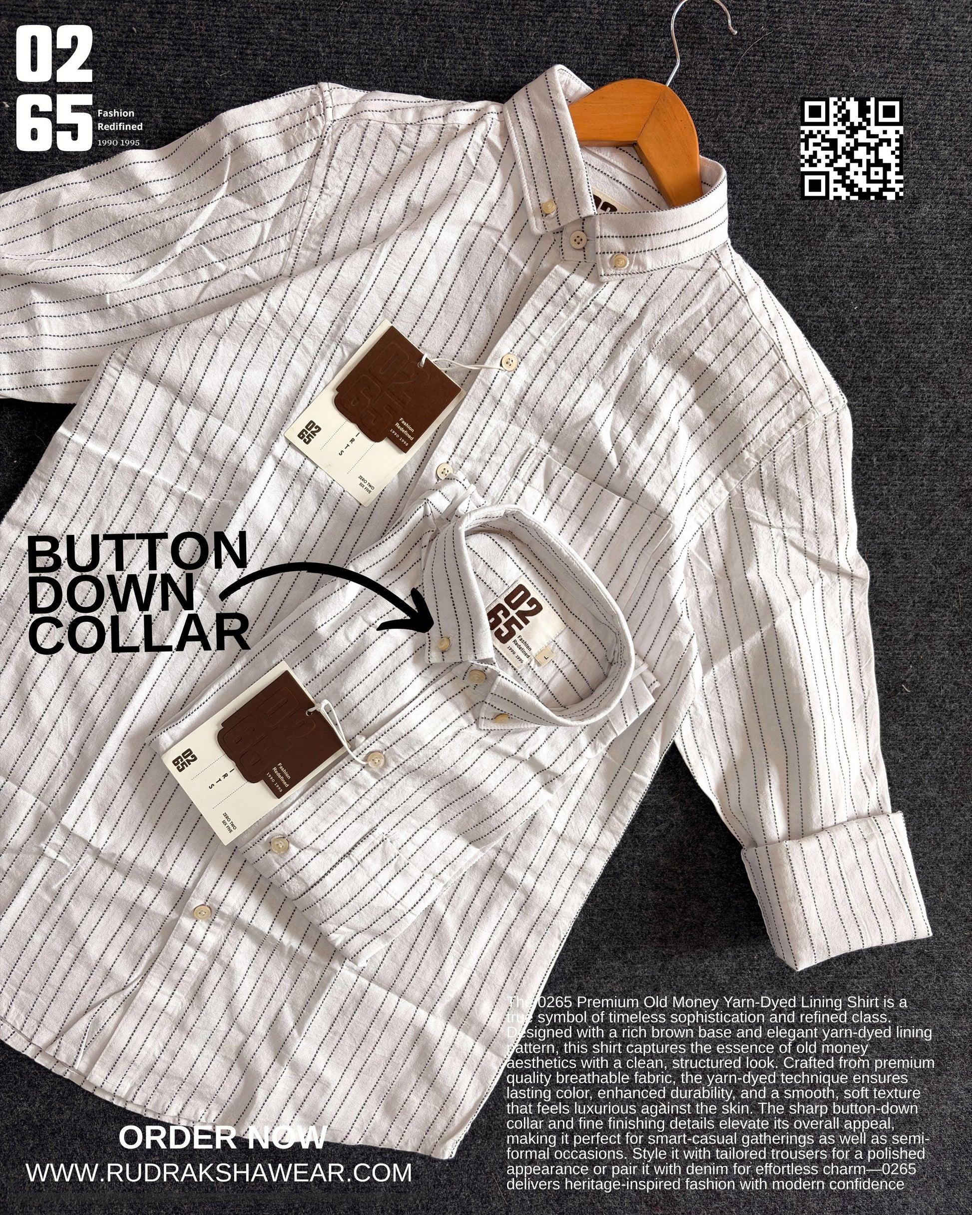 0265 Premium Old Money Vertical Lining Textured Full Sleeve Shirt | 100% Cotton Fabric | Back Side Pleated | Button Down Collar