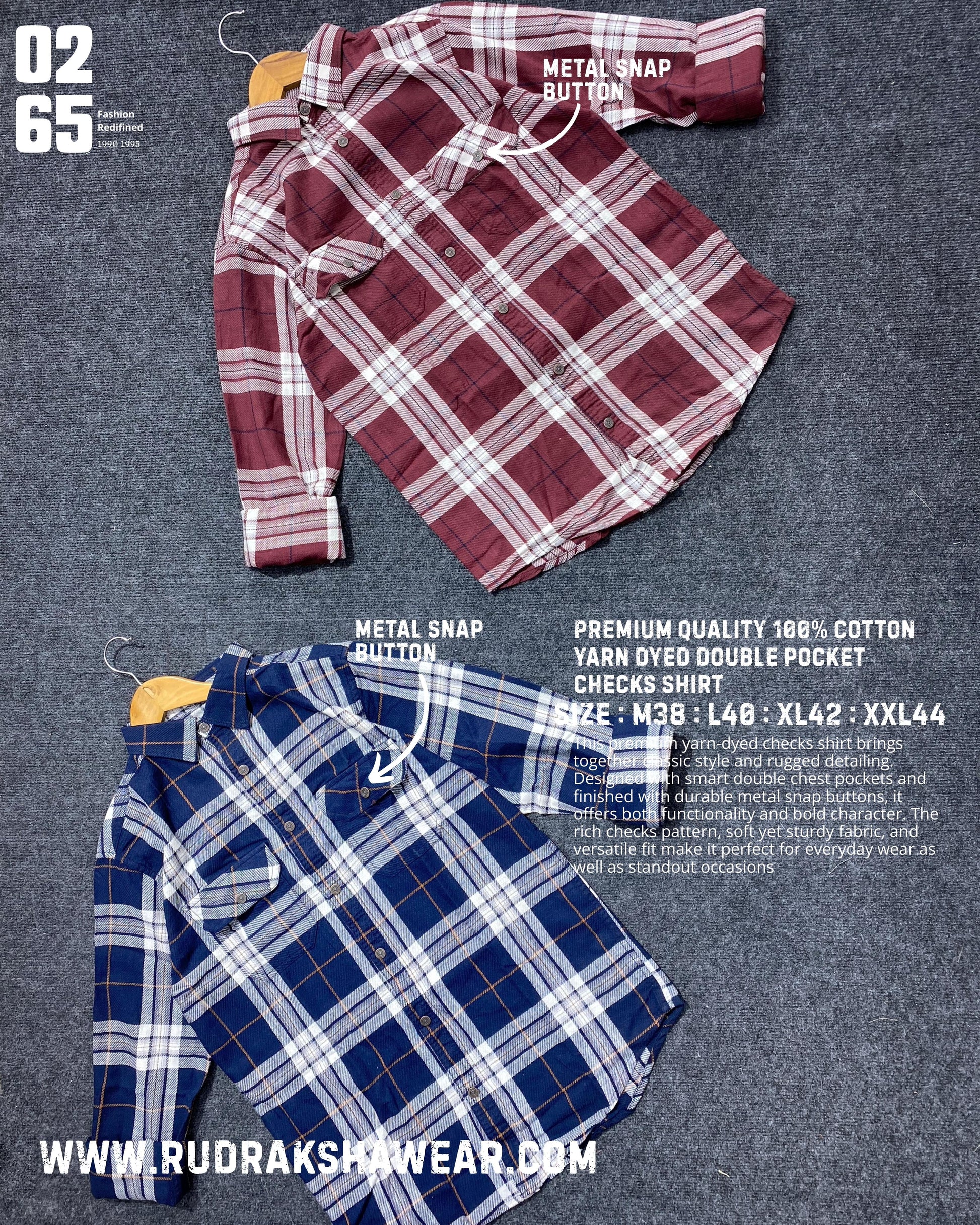 0265 Premium Yarn Dyed Checks Shirt - Ultra Soft 100% Cotton Fabric - Full Sleeve - Metal Snap Buttons