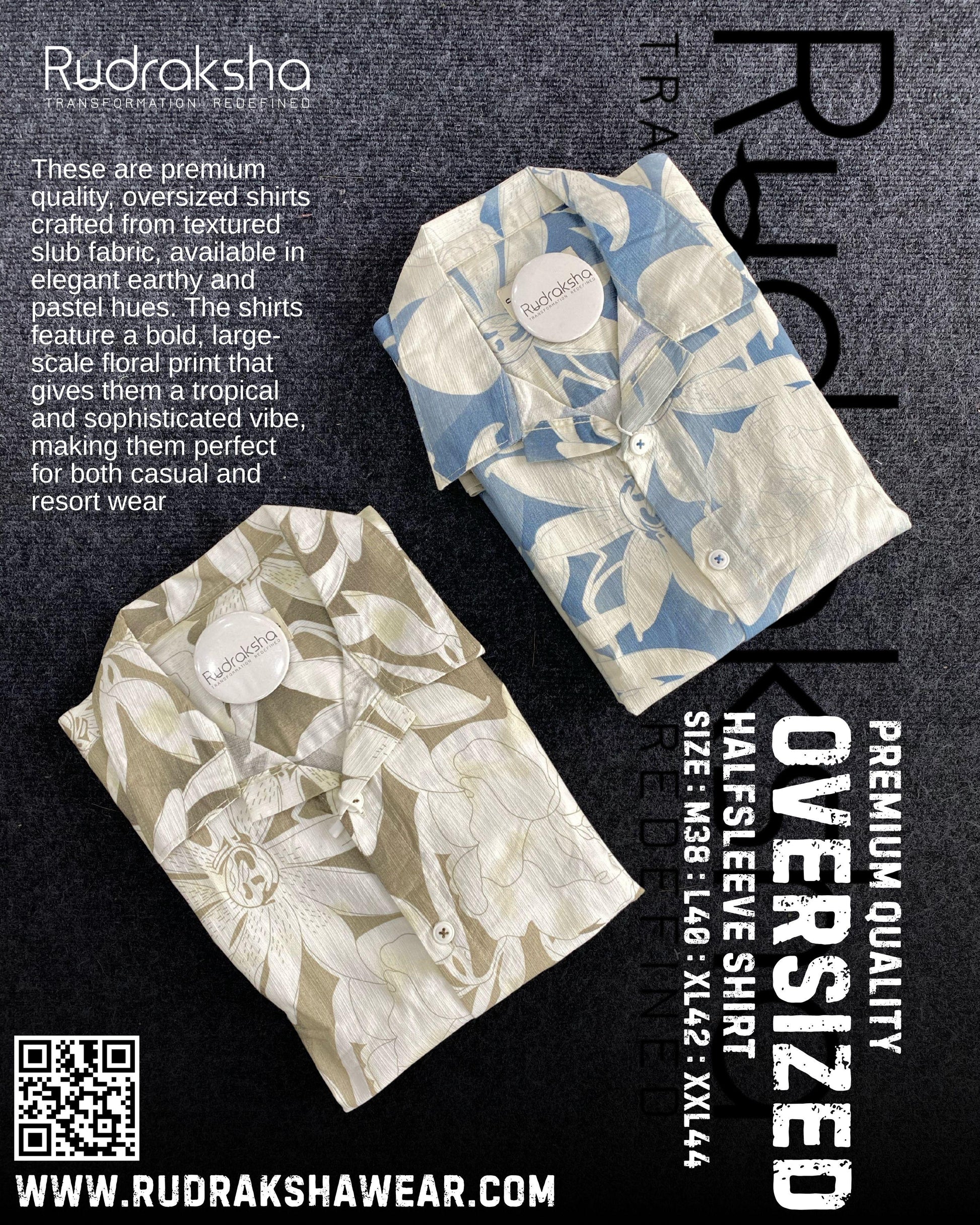 Premium Cuban Collar Oversized Half Sleeve Shirt | Slub printed fabric